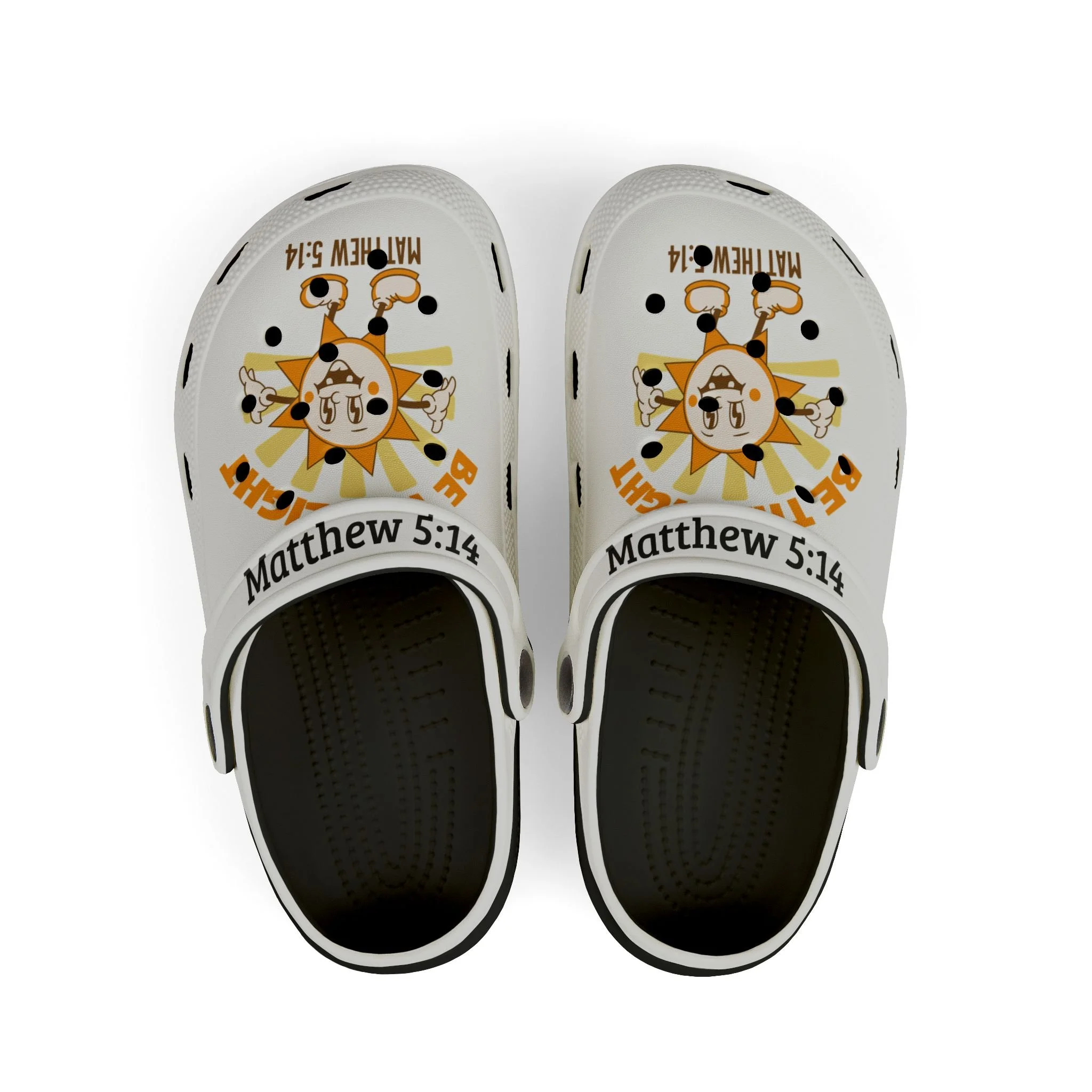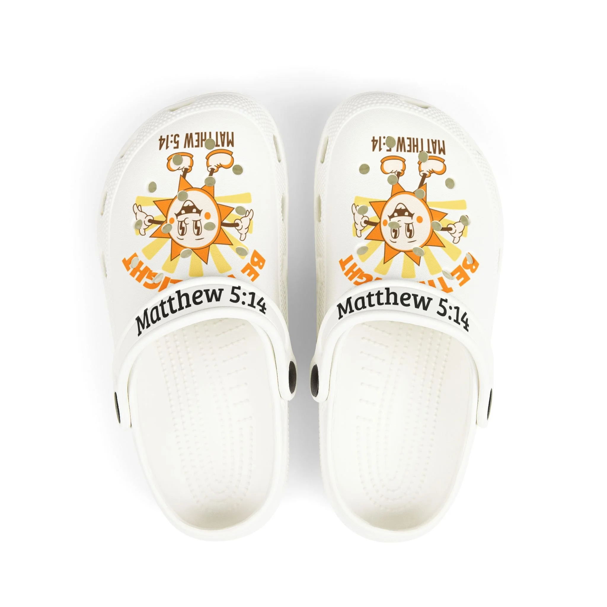Shop the Collection Show your FAITH in style. Kids Isaiah 25:1 T-Shirt Boy/Girl $20.00 View Options Matthew 5:14 Hooded Sweatshirt Boy/Girl $40.00 View Options Matthew 5:14 Clogs Boy/Girl $24.00 View Options